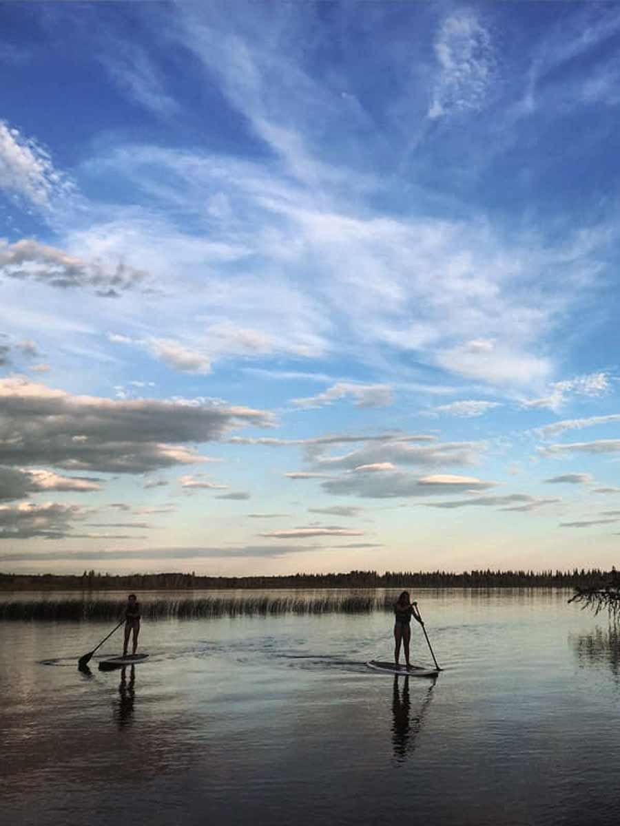 Waters Edge Eco Lodge will be your own personal sanctuary during your stay. Not only does the lodge itself create an atmosphere of peace and tranquility, but the opportunities to reconnect with yourself, your loved ones and experience all that nature offers us, are endless. There are a variety of water and land activities to enjoy year round at our Saskatchewan lake resort, including paddle boarding, canoeing, hiking, bird watching, skating, and cross country skiing just to name a few.